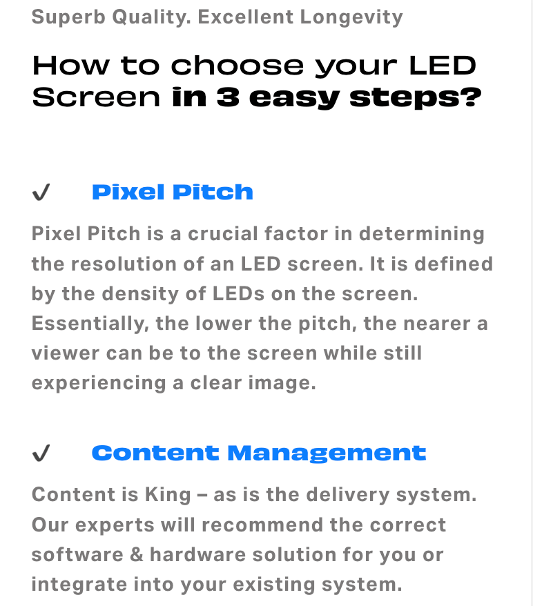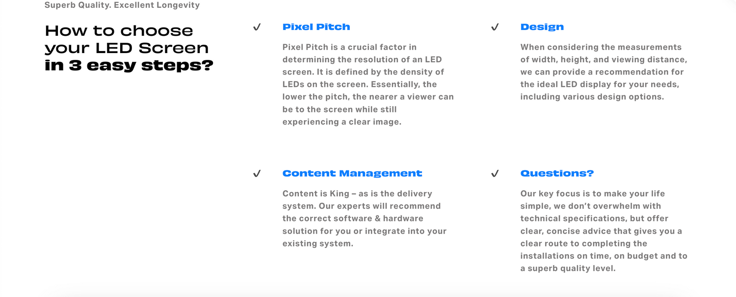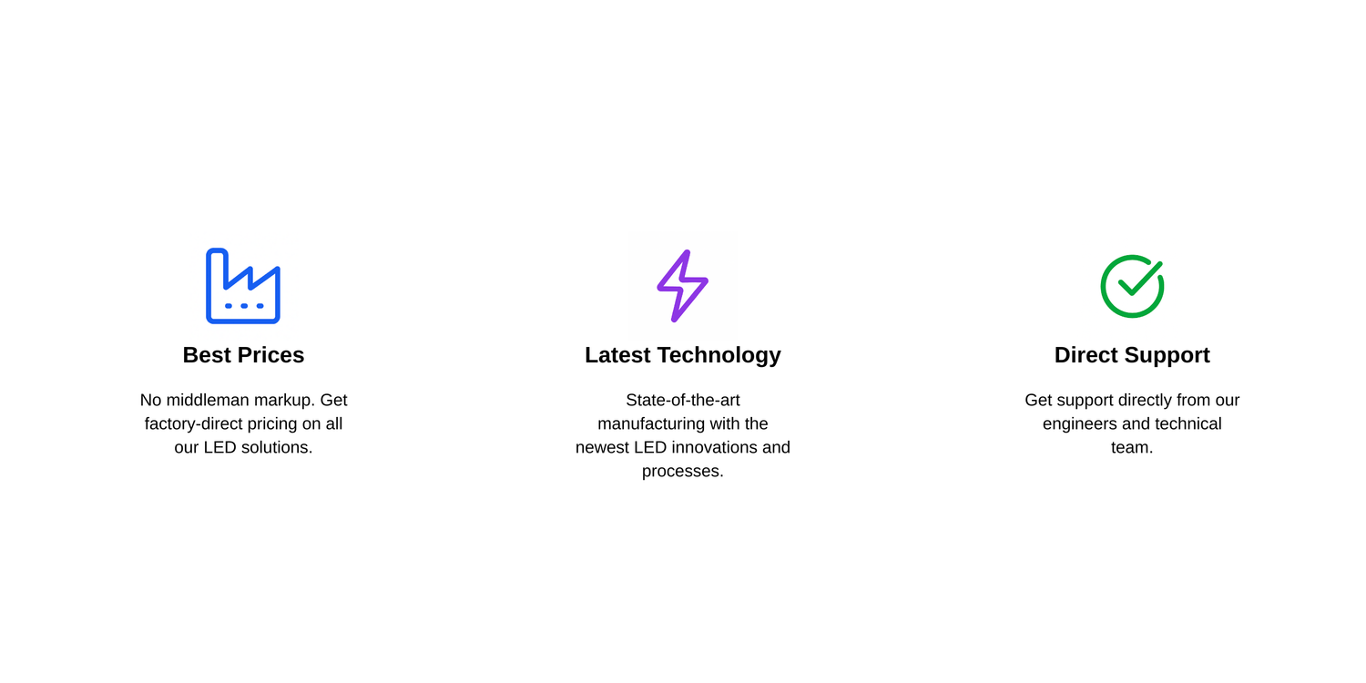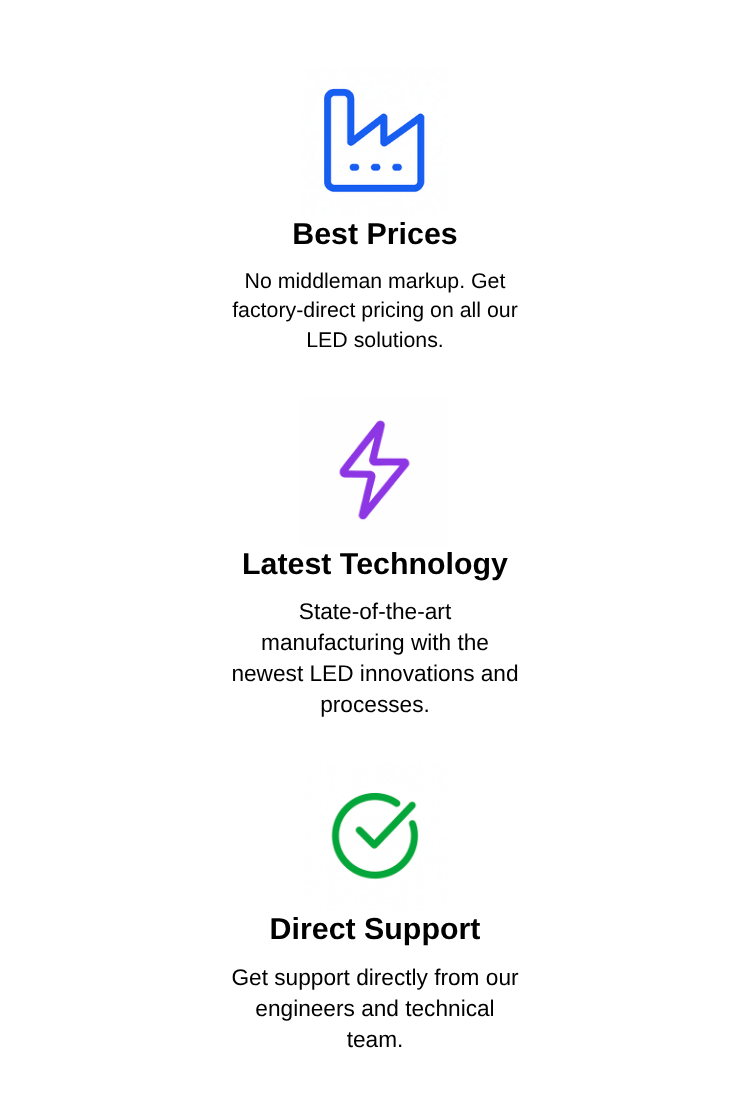 Manufactured directly in our state-of-the-art factory using the latest technology. Skip the middlemen and get the best prices on professional LED displays.