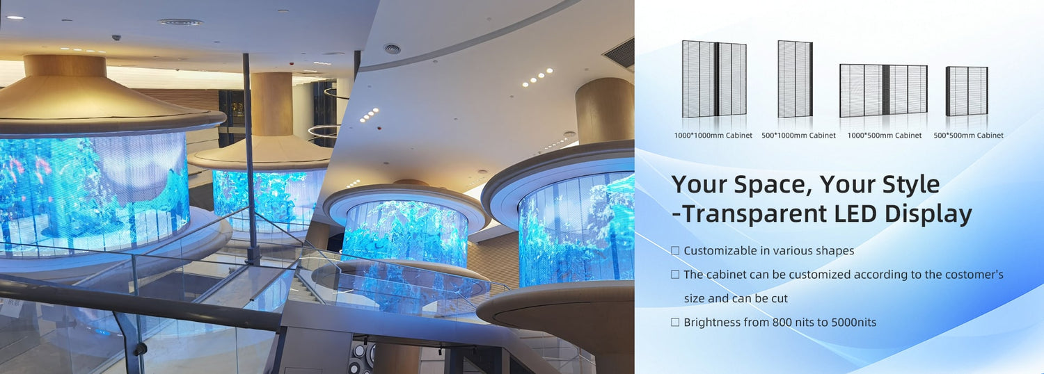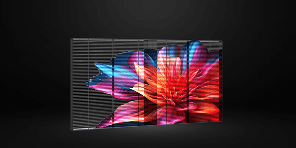 A radiant parrot displayed on a transparent LED screen illustrates how natural colour reproduction meets see-through technology. Perfect for retail windows or indoor applications where brightness and openness matter.